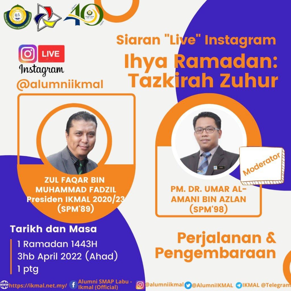 Tazkirah Zohor 1 Ramadhan 1443HApr 3, 2022adminNewsAlumni, TazkirahTonton sesi ini dengan klik di SINI.