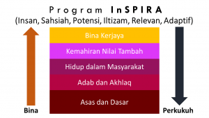 Justeru, lahirlah program yang kita namakan sebagai InSPIRA ini, dengan memberi penumpuan kepada aspek INSAN, SAHSIAH, POTENSI, ILTIZAM, RELEVAN dan ADAPTIF.